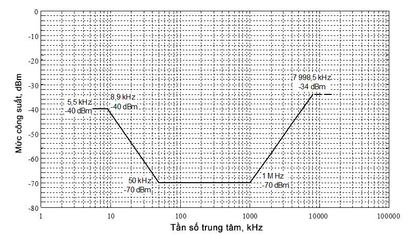 - Các điểm đo: Đánh giá tất cả các ký tự. Sai lệch tần số không được lớn hơn