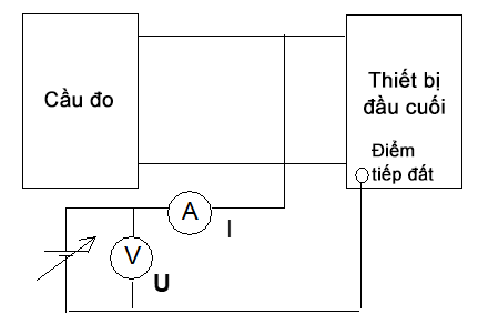 Điện trở một chiều giữa mỗi đường dây tại giao diện kết nối của thiết bị đầu cuối so với đất trong trạng thái chờ khi điện áp tín hiệu thử là 100 VDC, không được nhỏ hơn 10 MΩ.